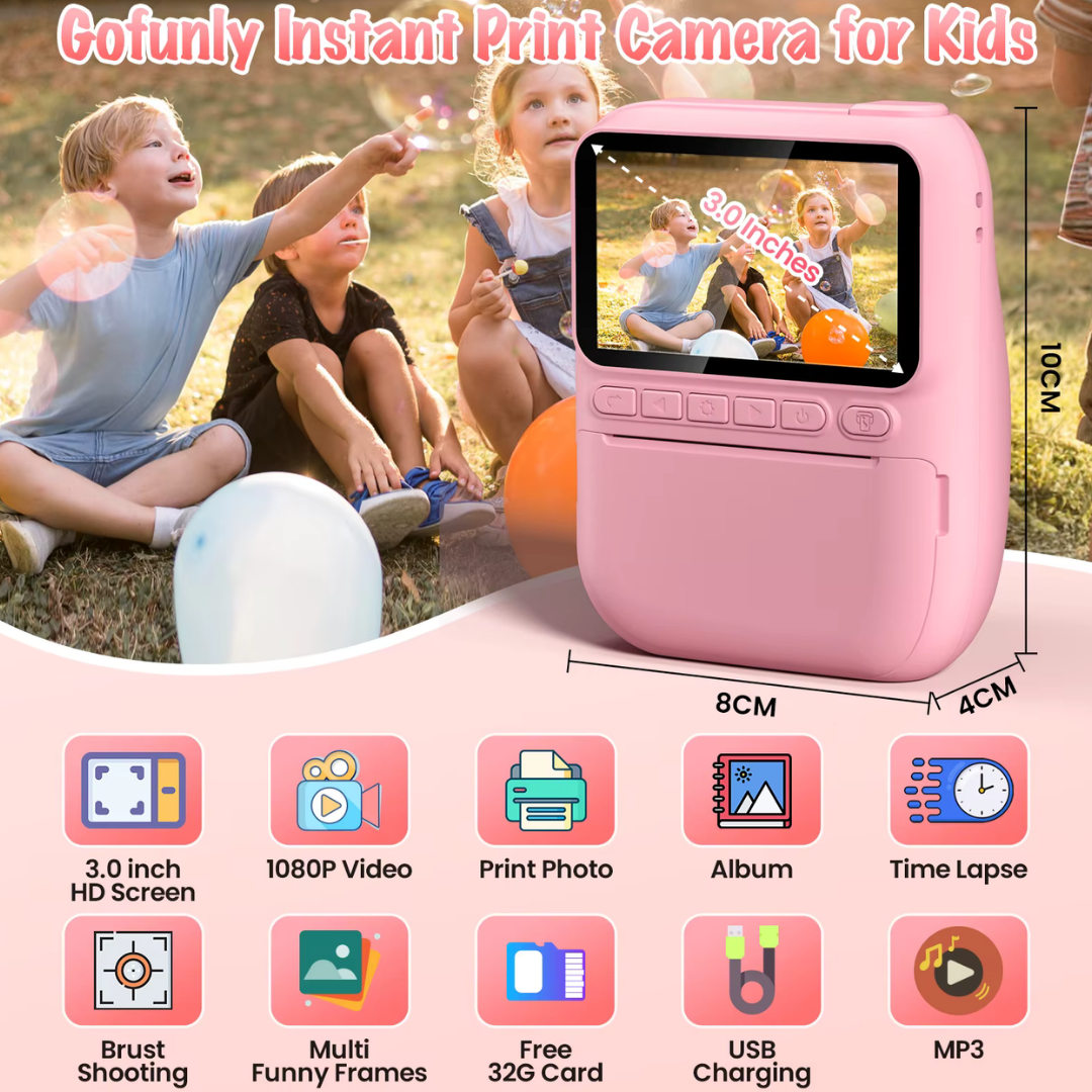 Esta cámara de impresión instantánea es el compañero ideal para niños de 6 a 12 años, combinando tecnología avanzada con creatividad sin límites. Diseñada para inspirar la imaginación y capturar recuerdos únicos, es perfecta para regalar en cualquier ocasión especial.